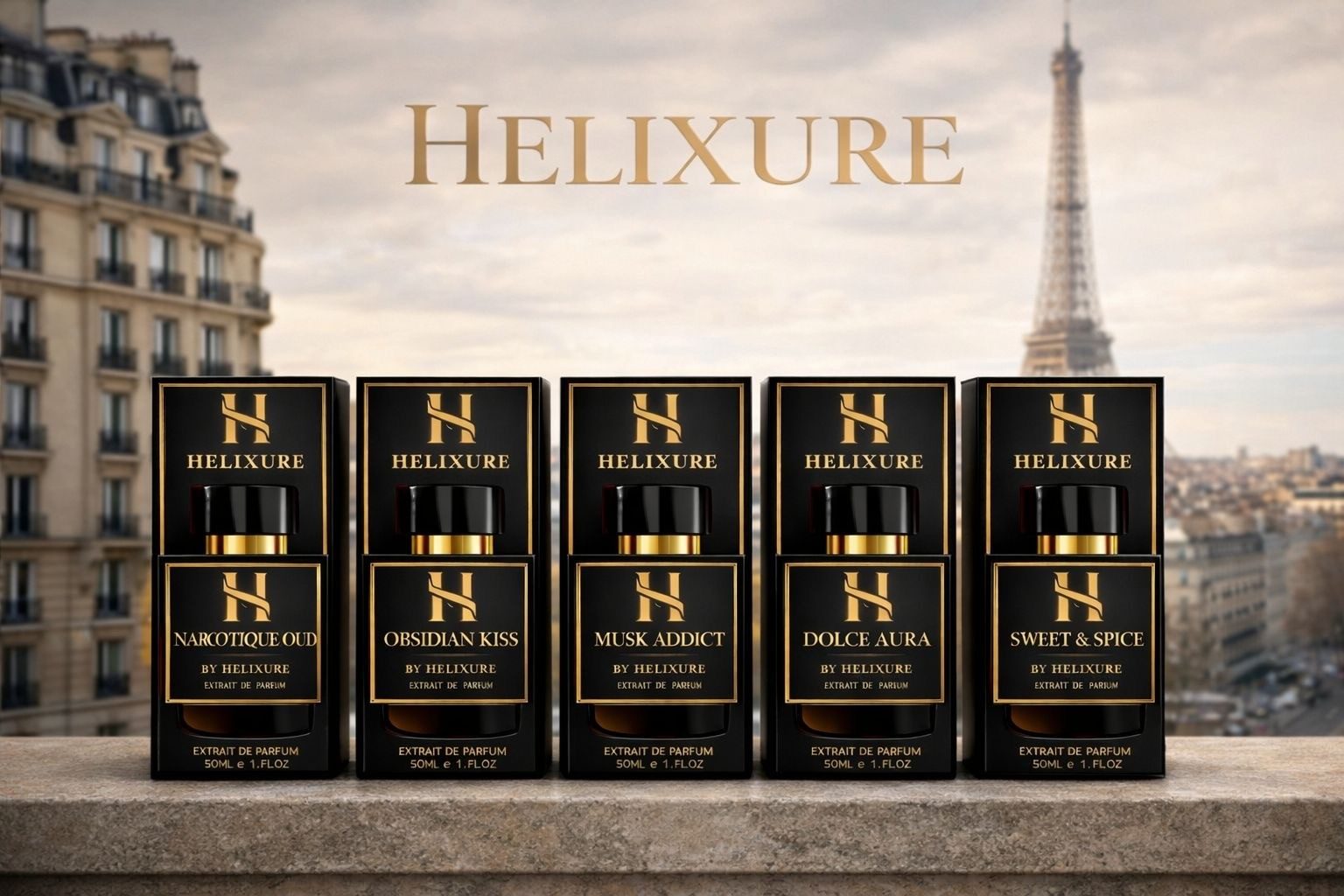 Plongez dans l’univers exclusif de HELIXURE, où chaque parfum est soigneusement élaboré avec des ingrédients de qualité et présenté dans un packaging élégant et soigné.